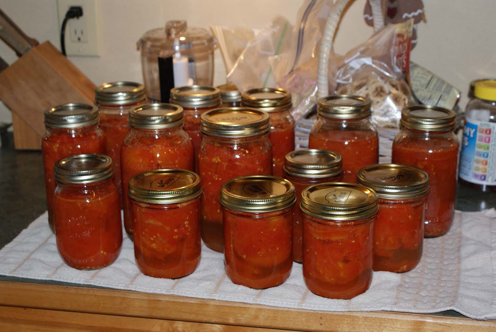 Well, once again this year we have not grown enough tomatoes to can. Our heirlooms did MUCH better this year (I think they could sense it was their last chance!) and I have managed to make four quarts of freezer pasta sauce from them. But I have just not had enough to can up for stew tomatoes so I bought twenty pounds from my Grandma and did these last night. I had one quart and two pints of just leftover juice I went ahead and canned and figured we could use it for soup base.